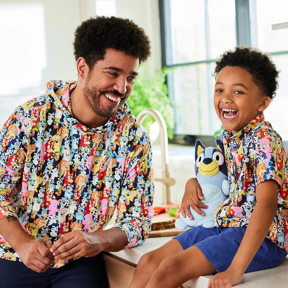 This pullover hoodie has definitely gone to the dogs. The allover print of this performance top from RSVLTS features the colorful cast of canine characters from Bluey, the series about the tireless Australian blue heeler puppy, streaming on Disney+. The lightweight fabric provides a light, breathable and comfy fit with four-way stretch so you’ll enjoy going on walkies or running around the track as a lap dog.