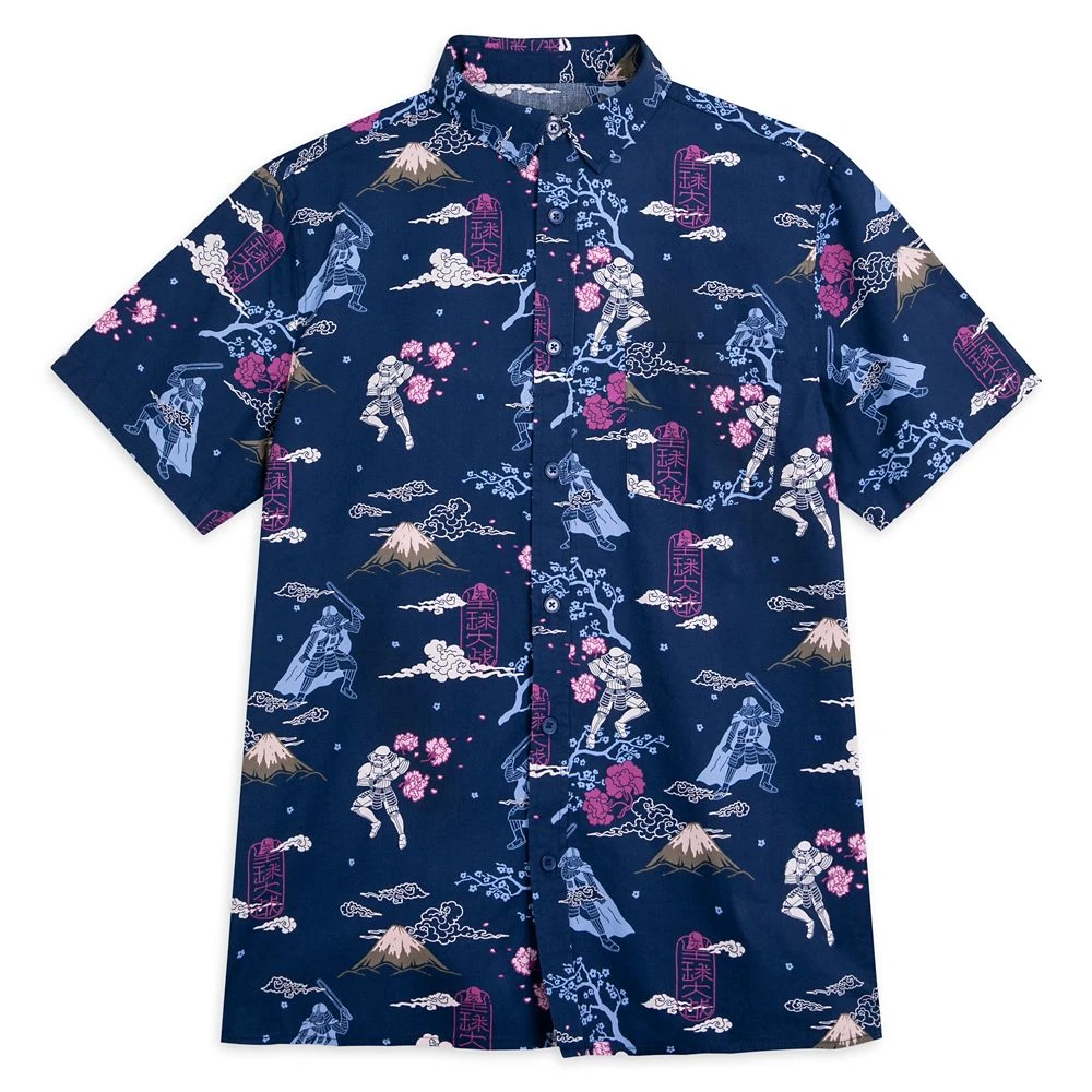 Star Wars flies East for this cool camp shirt featuring Darth Vader and Stormtroopers as Samurai warriors. With a button front, collar, chest pocket and shirttail hem, it’s a classic look with a bold new direction.
