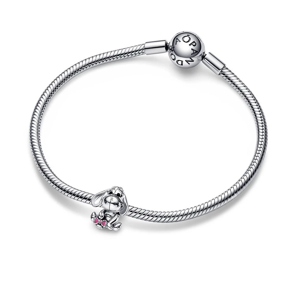 Friends stick together–just like good ol’ Eeyore and his companions in the Hundred Acre Wood. This sterling silver charm from Pandora finds Eeyore in a sitting pose, looking rather cheerful, as he’s found his often-lost tail and is holding it in his front paw. True-to-life ”stitching” details and black enamel eyes bring the much-loved donkey to life. Wear Eeyore on your Pandora Moments charm holders as a celebration of friendship in all its shapes and sizes.