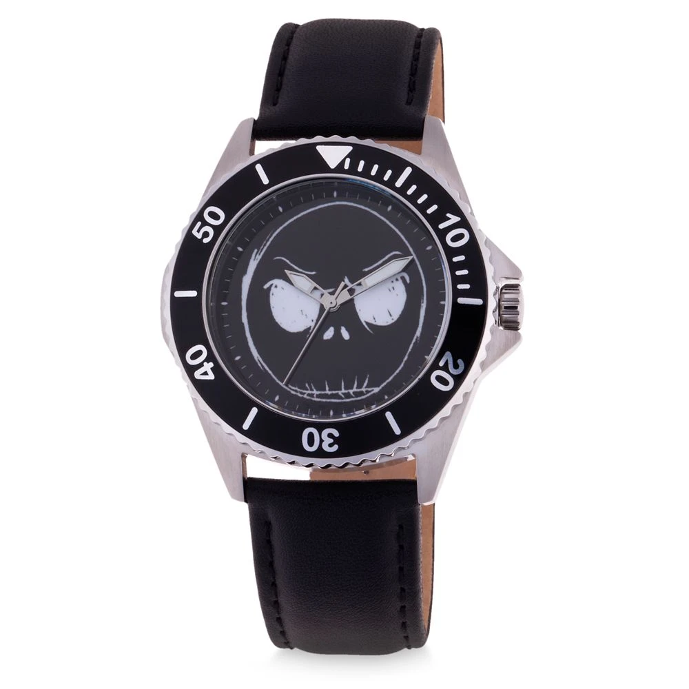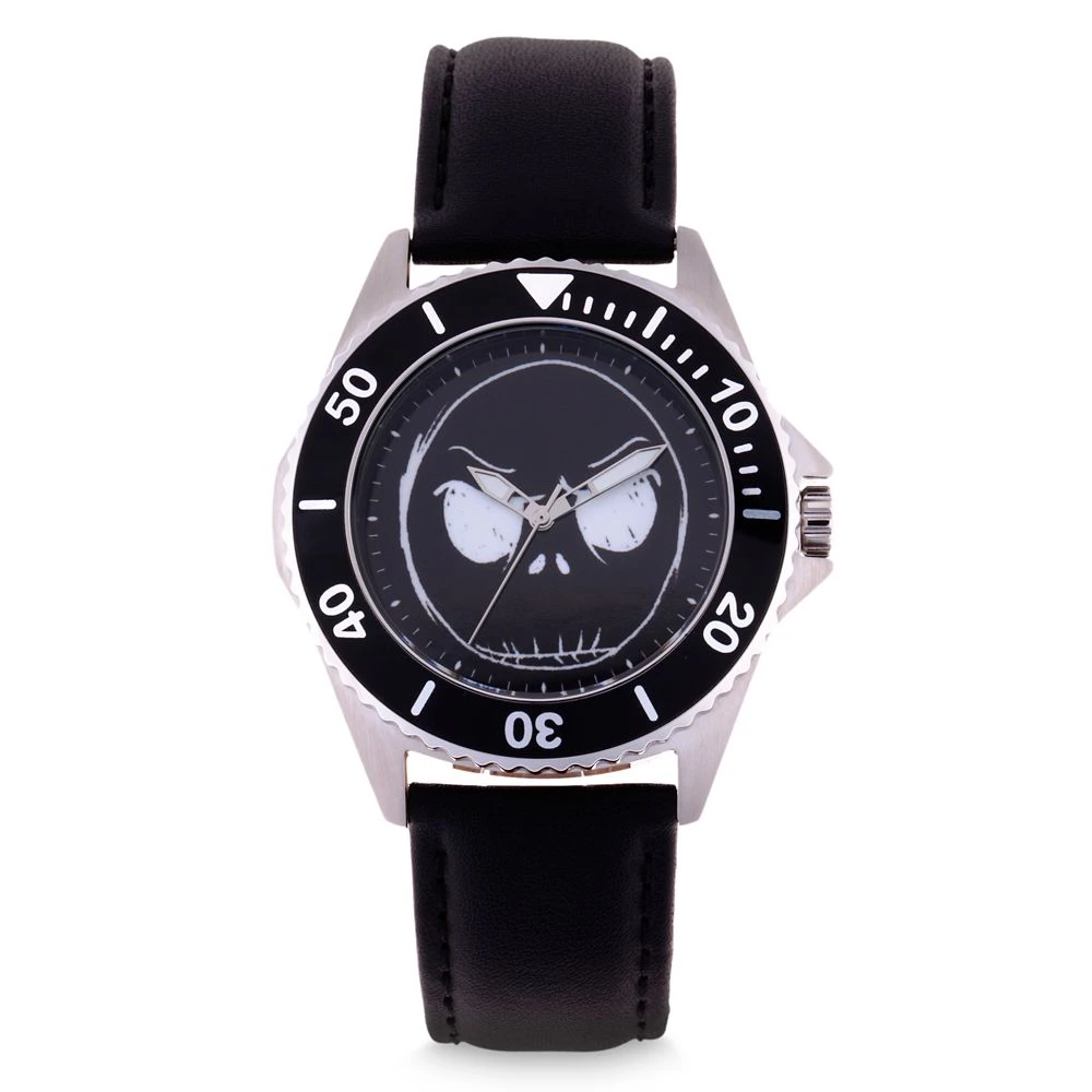 The watch face of this Jack Skellington Watch for adults features a face to watch in the form of the sketch art design of the Pumpkin King. Inspired by Tim Burton’s The Nightmare Before Christmas, it includes a leather band.