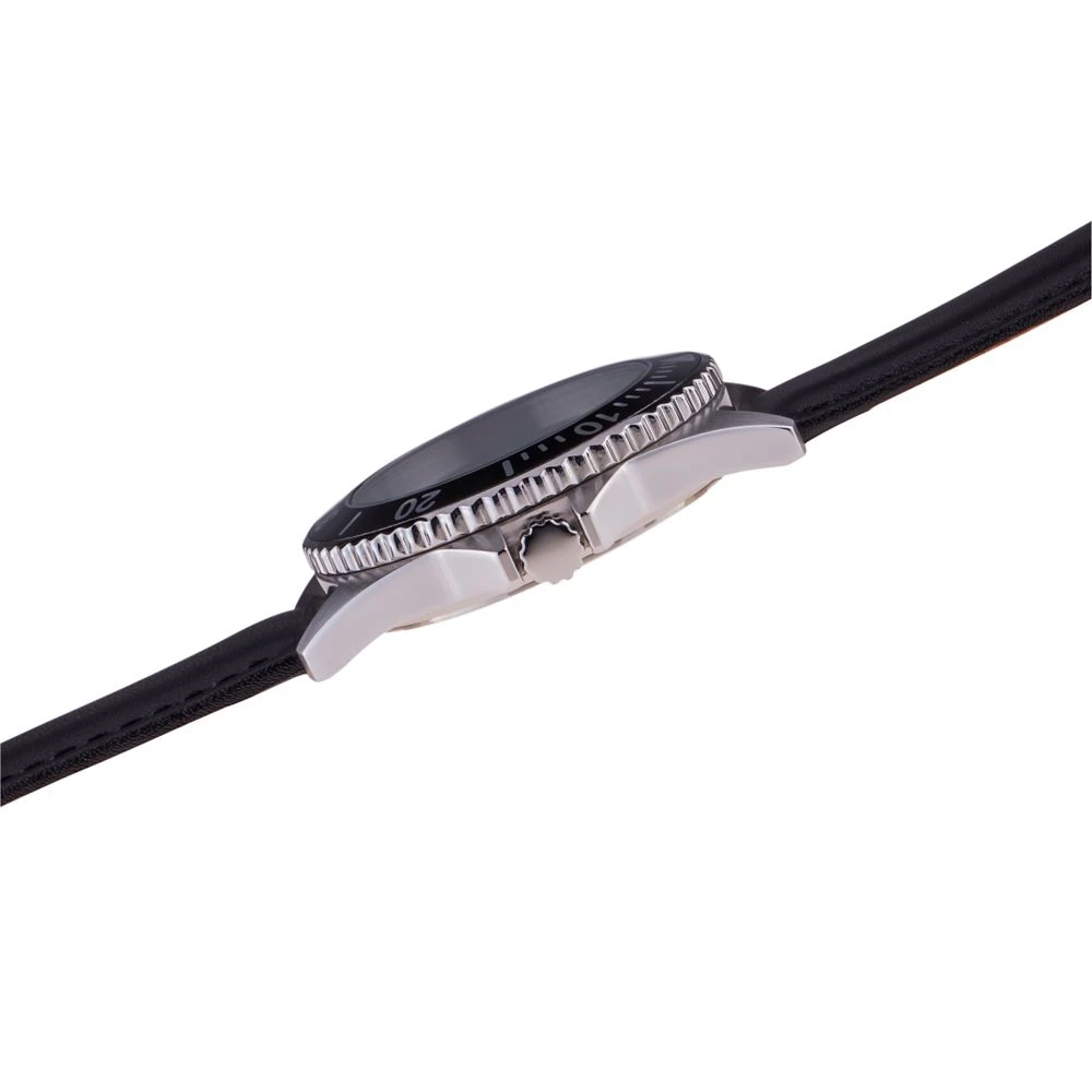 - Adjustable black leather strap with buckle closure
