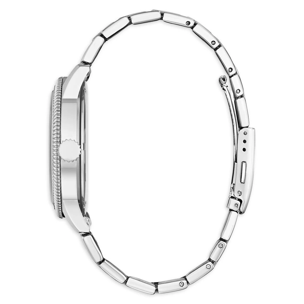 - Silvertone stainless steel case and bracelet