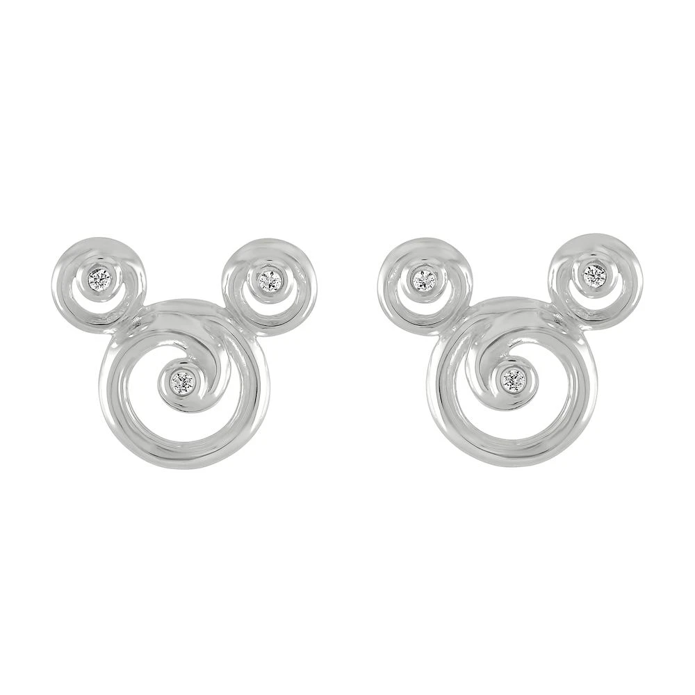 Mickey’s iconic silhouette is given a flourishing swirl with these elegant earrings by Rebecca Hook. Fashioned in sterling silver, they’re accented with clear cubic zirconia to add a sparkle to your day.