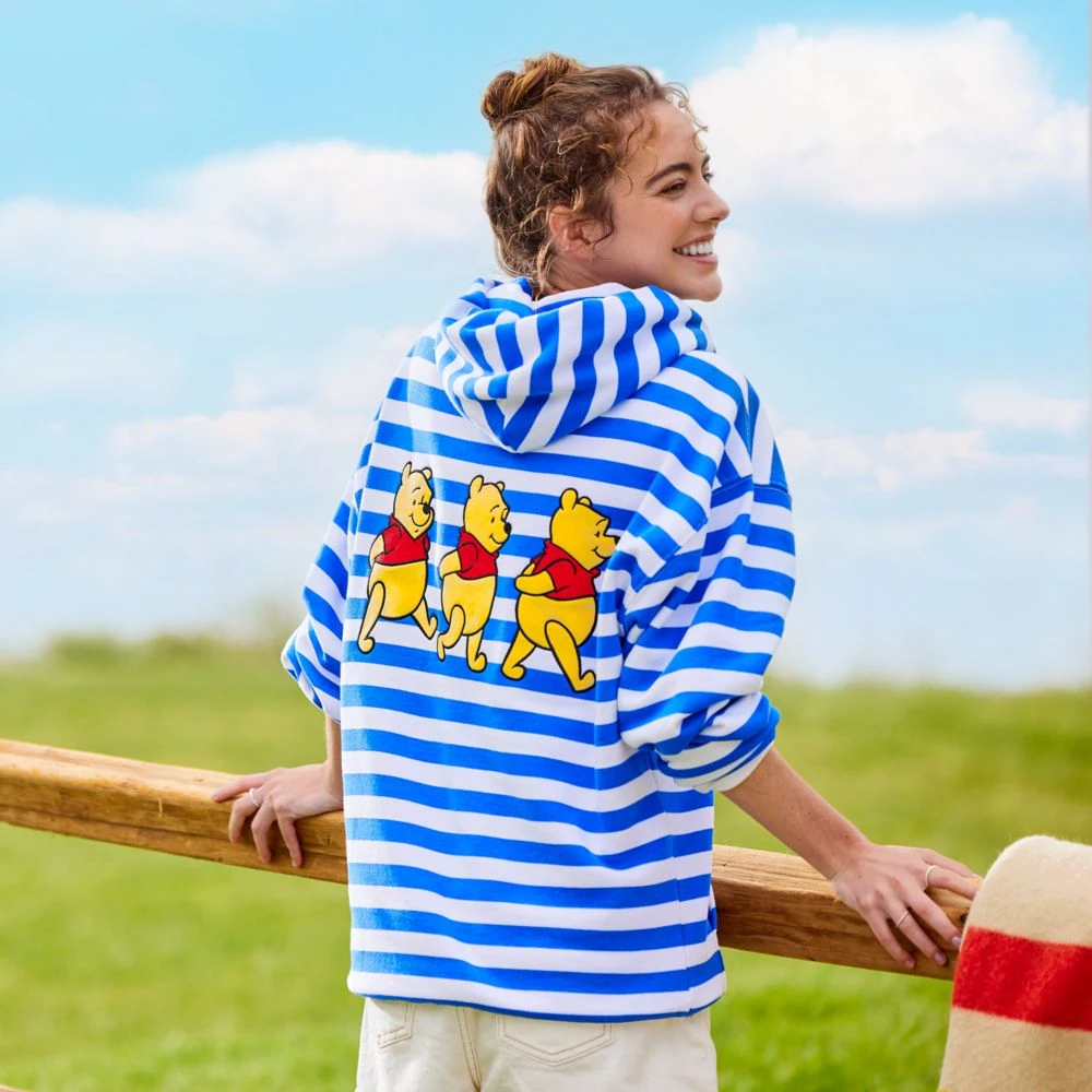 Blustery days are no bother with Winnie the Pooh and this striped pullover hoodie featuring embroidered Pooh appliqués on the front and back, a warm fleece interior, contrast ribbed trims and a pouch pocket. It’s just the thing to wear every ”windsday” or any day.
