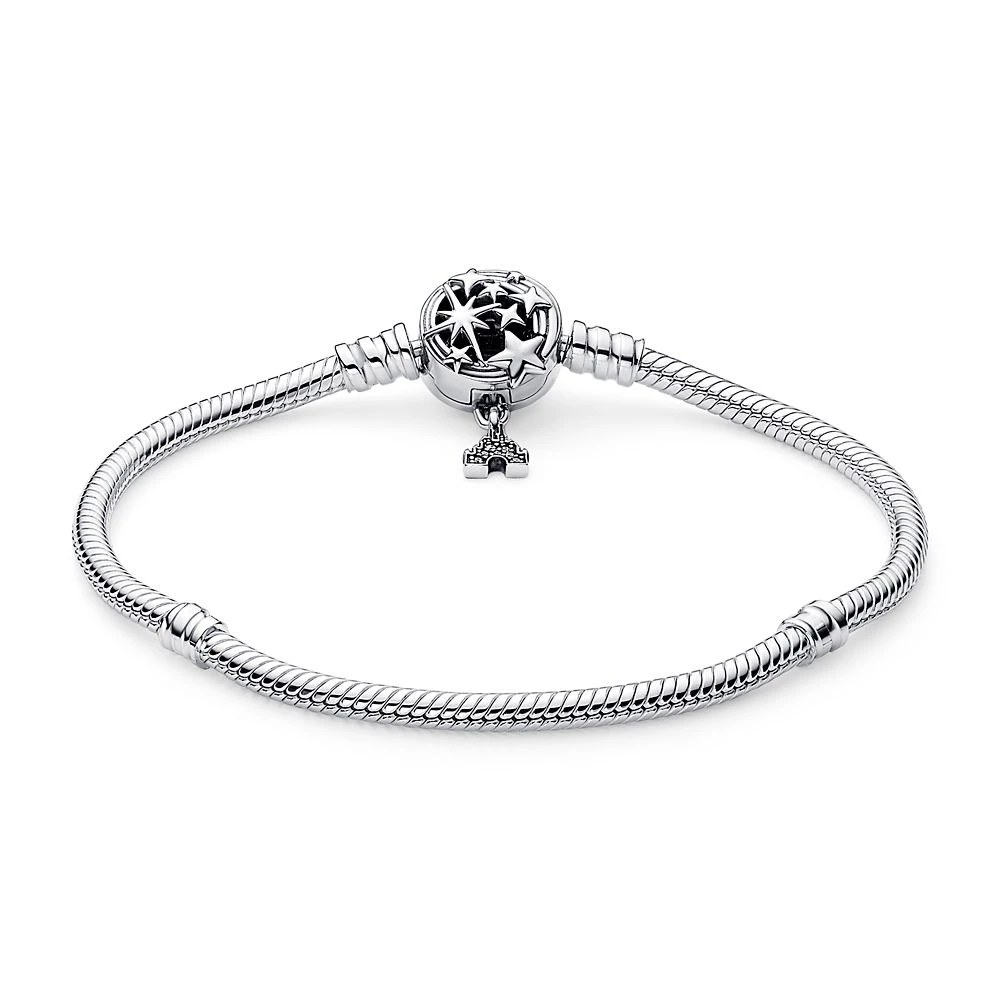 Make your favorite Disney Parks memories last with this snake chain bracelet from Pandora. Crafted in sterling silver, the bracelet can be styled with 16-18 of your favorite charms–and features an openwork clasp with different star shapes. For added movement, the clasp has a dangling Fantasyland Castle with extra sparkle. It’s the perfect piece to take home to keep treasured memories by your side.