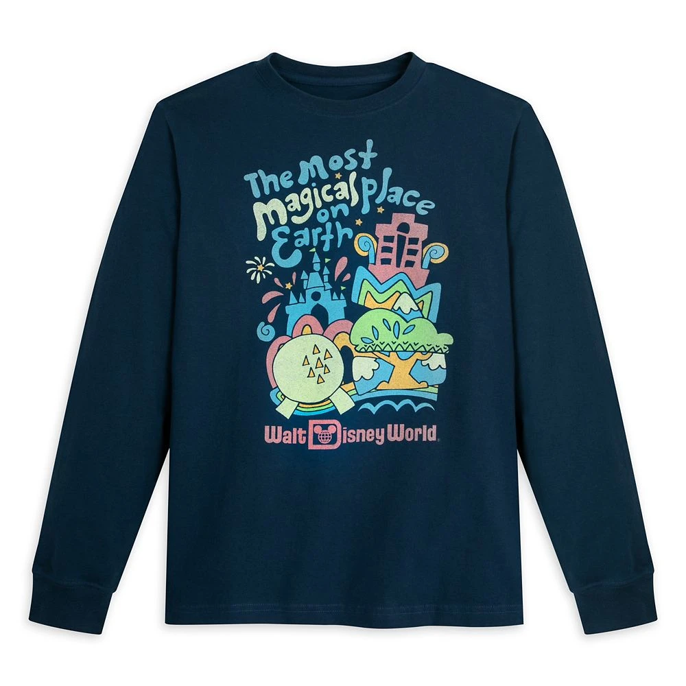 Take home a memorable memento of ”The Most Magical Place on Earth” with this medium weight long sleeve tee featuring four fabulous Walt Disney World icons in a colorful design.
